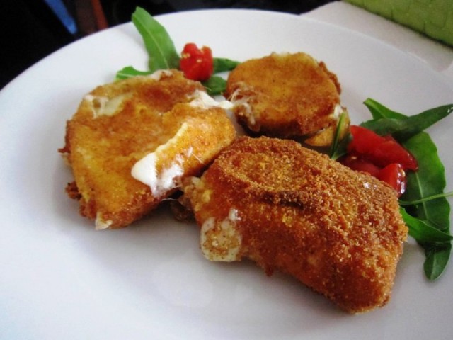 come la parmigiana di melanzane, i peperoni al gratin, i medaglioni di melanzana indorati e fritti con provola e prosciutto, la mitica mozzarella in carrozza.