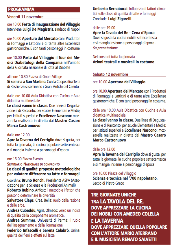 Infine, in contemporanea a I FORMAGGI VANNO IN CLASSE, si svolgerà, sempre negli spazi dello g.n.a.m.VILLAGE, il MERCATO DEL ‘700. AI TEMPI DI RE CARLO, una delle Manifestazioni conclusive dell’anno dedicato al trecentesimo della nascita di Carlo III Re di Napoli nel 1700 organizzata dall’Associazione Siti Reali.