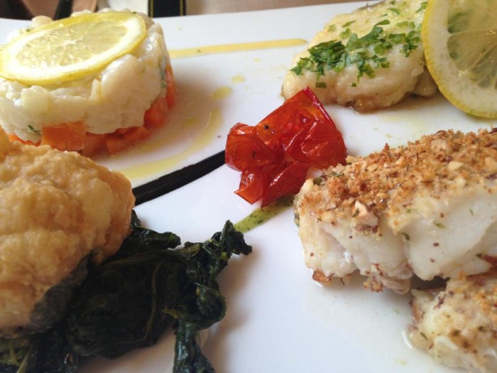 Abbondanti e di materia i due secondi di pesce, il fresco merluzzo che resta una grande carne nonostante l'idiosincrasia generazionale maturata con l'obbligo di mangiarlo ogni giorno da piccoli.