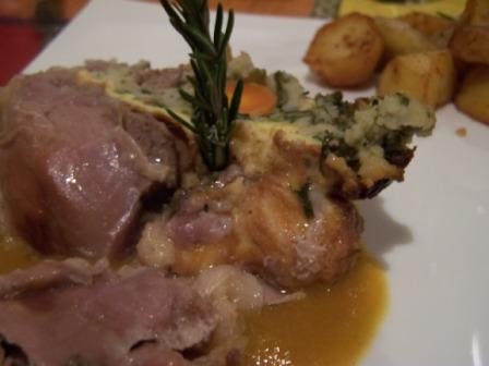 Un cosciotto di agnello farcito. Tenerissime le carni. Succulento.