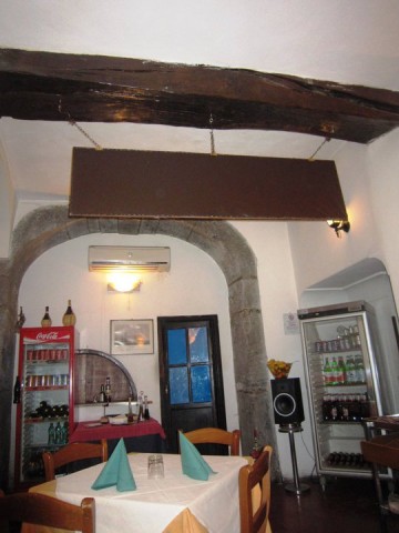 All’ingresso c’è un forno per pizze poiché il locale, pur caratterizzandosi come cantina – osteria, è anche pizzeria, in particolare da asporto. Tra le due piccole sale, separate da un arco, il titolare, Francesco Falanga 36 anni, diplomato alla Scuola Alberghiera, si occupa dell’accoglienza e del servizio, che grazie alle sue lunghe esperienze all’estero, gli permettono di ospitare al meglio i turisti di ogni nazionalità, soprattutto francesi.