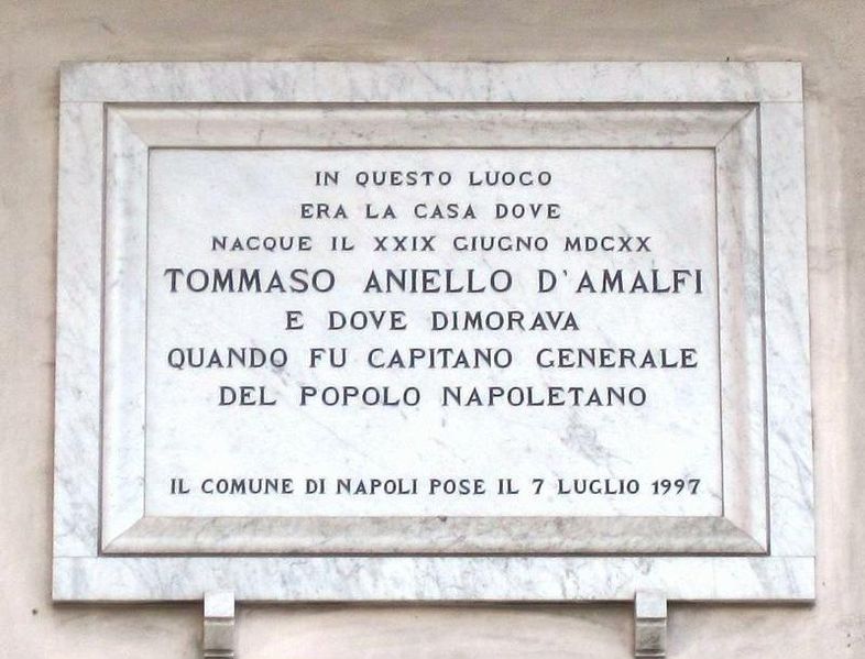 786px-Iscrizione_Masaniello 17/4/2011 Torna a: Napoli, La Cantina di Masaniello: tra leggende e verità, la cucina di uno dei più antichi locali del centro storico Lapide← PrecedenteSuccessiva →
