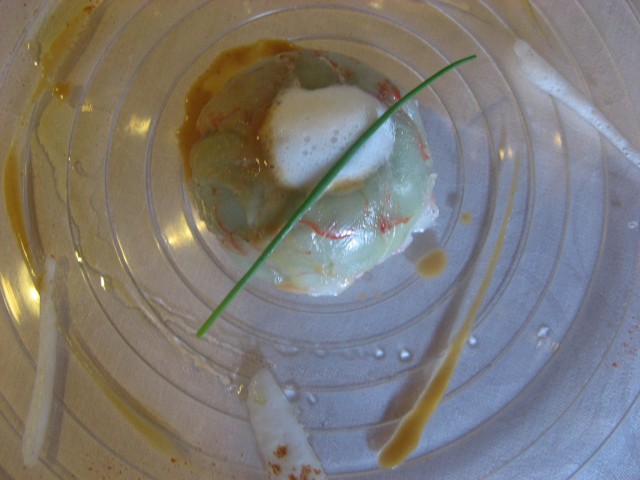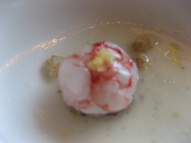 La Cantinella. Lingua di vitello con gamberi rossi, zuppetta di baccalà, ciccioli di maiale e limoni di Sorrento