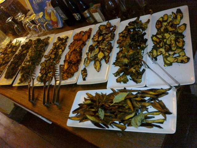Alla casa di Ninetta a pranzo si possono spendere anche solo 8 euro e cinquanta, con un primo piatto, un secondo, un contorno di verdure e acqua … della casa. Alla carta sui 30. E che bello ritrovare a tavola le vecchie bottiglie di vetro con acqua di fontana! Sul lungo tavolo di legno posto al centro, tra sala e cucina, un ricco buffet di verdure – tutte quelle di stagione – stufate o grigliate (molto buoni i carciofini spaccati e arrostiti).