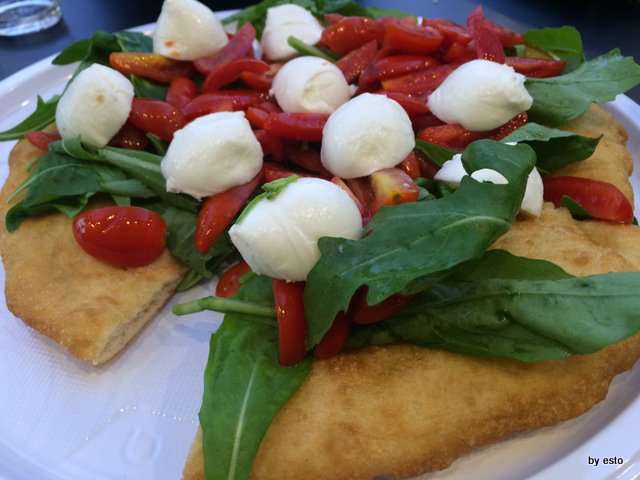 Oppure semplicemente a mo’ di pizzella ricoperta di pomodoro fresco a pacchetelle e ovoli di bufala.