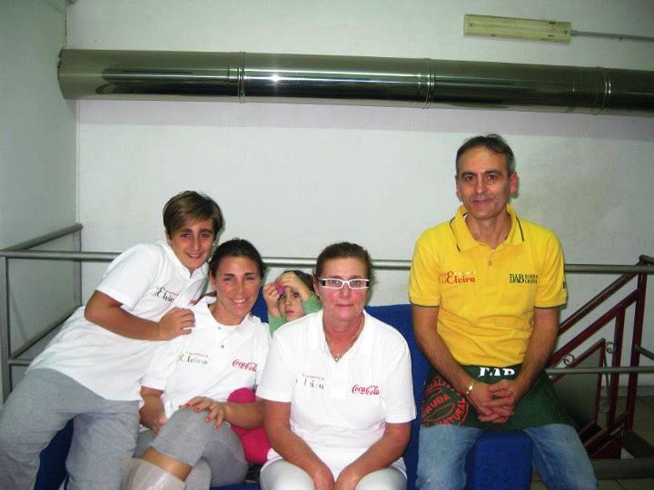 La squadra – famiglia al completo: da dx papà Vincenzo, Mamma Elvira, semi nascosta la peperina Regina mascotte del locale e figlia di Wanda e Luigi il secondo figlio