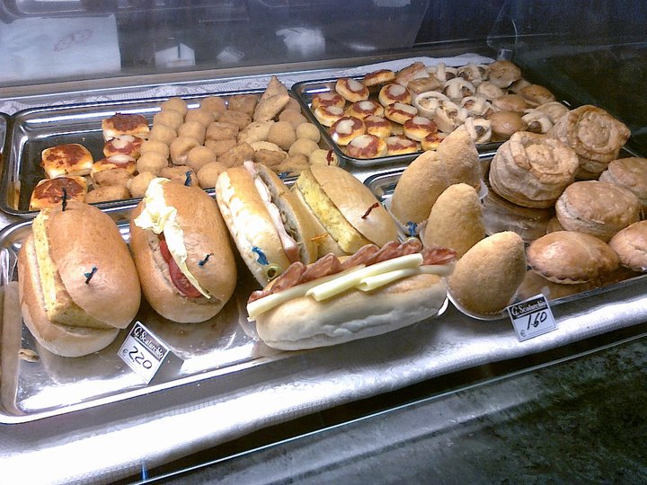 Un bell’assortimento di panini, rustici, tartine, frittatine di pasta, pan brioche con prosciutto, salame e formaggio, e anche qualche primo e secondo piatto.
