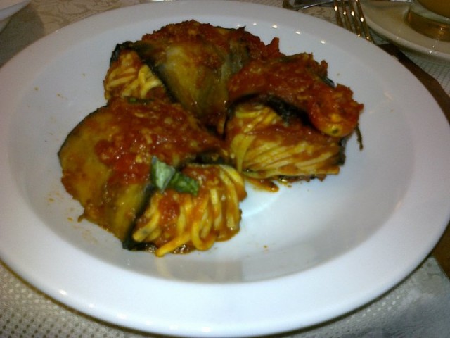 Molto al di sopra delle aspettative, invece, l’involtino “Montesomma”: una fetta di melanzana avvolta intorno ad un rotolo di tagliolini, il tutto appena scottato in salsa di pomodoro e basilico. Buonissimo. E’ vero che con questi semplici ingredienti si gioca in casa. Ma con la qualità e il sapore giusti è un bel giocare.