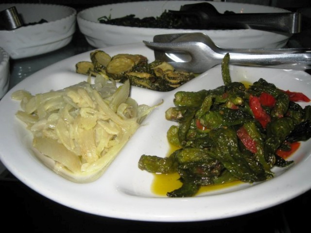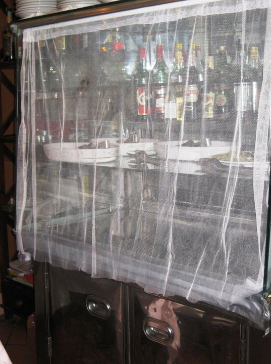 In sala, circa 50 coperti tra interno e marciapiede esterno, fa bella mostra di sé un banco contorni con tanto di delicato velo bianco per proteggere le pietanze dalle mosche.