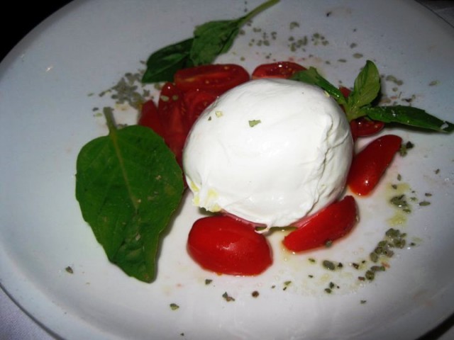 Finalmente Antonio torna in sala e, saltando da un tavolo all’altro, risponde a puntate alle mie domande. La cucina, vista la posizione, è essenzialmente di mare, anche se, in inverno compaiono tutti i piatti della pura tradizione napoletana, ovvero, ragù e genovese, maccheroni lardiati, salsicce e friarielli, polpette e via discorrendo…Mentre parliamo, vedo passare una splendida mozzarella tricolore, ne chiedo la provenienza: bufala di produzione di un noto caseificio dell’agro aversano, decisamente invitante.