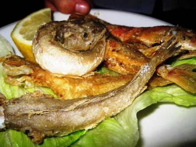 Verso le 13,30 – 14,00 inizia il caos totale: tavoli che volano da una parte all’altra della sala, file di persone all’ingresso, clienti che reclamano il proprio posto abituale, insomma un putiferio multilingue. Antonio ed Andrea restano tranquilli, dicono di sì a tutti (“dice ca sì ca nun è peccato” si dice a Napoli). Tutto si sistema come per incanto, padre e figlio schizzano tra sala e cucina, Antonio con il solito ingrediente indispensabile ai napoletani per la sopravvivenza ( la “Santa Pacienza”di edoardiana memoria), trova persino il tempo di spinare una spigola alla brace, mentre ai tavoli arrivano a go – go calamari fritti, pesce spada alla griglia e frittura di paranza con tutti i crismi.