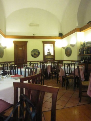 quando mi racconta che suo padre è stato per quasi 50 anni il custode del Circolo Savoia e del ristorante la Bersagliera e che per questo motivo, aveva avviato tutti i suoi figli al mestiere di cuoco. Praticamente, esclusi i contorni ed alcuni secondi e sughi più lunghi da preparare, tipo polpette, ragù, genovese, la sua cucina è ad personam: ad ognuno il suo pentolino, o pentolone, a seconda delle porzioni. Il personale di sala varia con i turni, praticamente qui non si chiude mai , si apre alle 11,00 e si chiude alle 16,00 per riaprire un paio d’ore dopo, fino a tarda sera, per il dopo teatro. Il menù non cambia da pranzo a cena,la differenza sta nel numero delle portate: a pranzo quattro primi, quattro secondi, una marea di contorni, frutta fresca e un paio di dessert. La sera la scelta alla carta è leggermente più ampia , soprattutto per i secondi di carne e di pesce. Il vino della casa arriva dal beneventano, aglianico e falanghina che fanno sempre degna figura, oppure una bella selezione di vini campani e nazionali, o birra. Non c’è carta dei vini, le bottiglie sono esposte, i clienti scelgono da soli. In tavola olio extravergine irpino ravece.