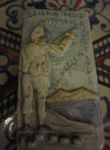 Torniamo seri: qui la ceramica impera, questo è la mattonella, oops, il biglietto da visita che, solo tre anni fa, Peppino Marangio, regalava ad ogni cliente, a prescindere dall’importo del conto.