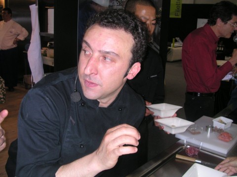Ecco perché il concetto di rieducazione al gusto non è un principio astratto, ma un vero recupero di valori gustativi che purtroppo comincia, e non potrebbe essere diversamente, solo quando si è grandicelli. Proprio come l’insegnamento delle lingue morte. L’omologazione papillosa gioca su due presupposti ancestrali, la voglia di dolce e di assenza di consistenza, cioé i cibi e le ricette devono avere una dolcezza, o meglio non spigolosità, di fondo per essere unanimente accettati e faciltà di masticazione. Ecco il motivo ancestrale dell’affermazione della destrutturazione spagnola, non a caso sorta in un paese che ha alle spalle solo qualche piatto di tradizione locale, un decimo, ad esempio, di quelle che può vantare il nostro piccolo Molise. L’alta ristorazione in fondo deve giocare su questo compromesso, distinguersi per i sapori, come i produttori di vino con quello che mettono in bottiglia, lavorando sulla presentabilità dei piatti e sulla loro accettabilità. In fondo chi mangerebbe insieme un raviolo di lingua di vitello ripieno di gamberi su zuppetta di bucce di limone, sconcigli e polvere di cozze se non amalgamati dalla tecnica dello chef di professione? Ecco, a Palazzo Petrucci non solo si trova alla grande, ma riporta anche a quei sapori spesso perduti e dissolti dalla pratica quotidiana. Il colpo di genio è dunque quando si propongono questi archetipi incrociandoli con le nuove abitudini: un rococò a fine pranzo è più che altro una usanza di devozione dei “grandi”, i bambini preferirebbero sicuramente un budino al cioccolato della Nestlé, ma presentato come tortino, annullata la consistenza originale senza azzerarla del tutto, diventa qualcosa che tutti possono inseguire, anche noi che non mangiamo dolce alla fine del pasto. Superbe.