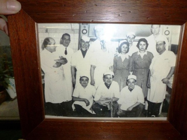 Inizio anni ’40: da sx Leone Varriale, il ragazzino al centro è Alfredo Russo allora tredicenne, con loro molti giovani di bottega, oggi illustri pasticcieri di città.