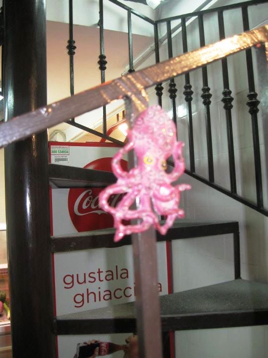 Una volta salita la scala “strittulella”, si accede alla saletta superiore con appena quattro tavoli e toilette. Alessandro mi conferma: “ non voglio strafare, continuo la mia attività di vendita e distribuzione e voglio cucinare bene per poche persone.” Solo cucina espresso, niente menù, giusto un’approssimazione per dare l’idea dei costi alla clientela, poi si sceglie al momento dalle vasche e si cucina a richiesta. Ai fornelli Alessandro con Viola che si occupa anche della sala.