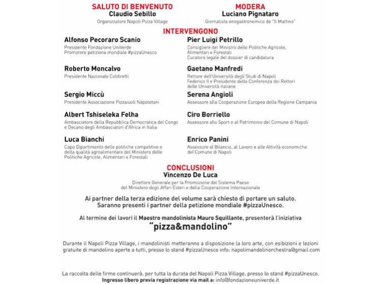 Napoli Pizza Village Convegno: “L’arte dei Pizzaiuoli napoletani patrimonio Unesco. Orgoglio italiano nel mondo”