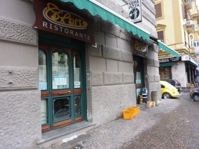 Le precedono la classica fritturina all’italiana, “rigorosamente preparata fresca ogni mattina” sottolinea Ugo, crocchè, arancini, frittatine e qualche antipasto (alici marinate, insalata di mare ecc) tra quelli elencati della carta della Osteria che viaggia parallelamente a l’attività di Pizzeria. Anche qui la scelta è più che tradizionale. Tra i primi, dagli Gnocchi alla sorrentina agli Spaghetti alle vongole o alle cozze; tra i secondi, dalla Cotoletta alla milanese alla Bistecca alla pizzaiola oppure, per il pesce (per lo più indicato come congelato), dal Baccalà (fritto o alla siciliana) ai Polpi in cassuola.