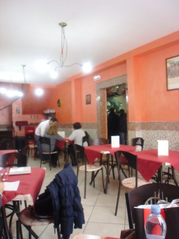 Dal nostro tavolo in fondo alla sala abbiamo cominciato a notare che dall’angolo forno-friggitoria spuntavano tanti crocchè, frittate di pasta, grosse montanare e arancine di riso e soprattutto pizze fritte, il pezzo forte!