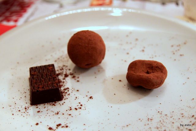 Umberto Pignatiello di Theobroma Cioccolateria ha portato le sue coccole finali: gheriglio di noce con cioccolato al latte, Moncatalì, bonbon ripieno di chicco d’uva catalanesca, e un lingottino di puro Equador.