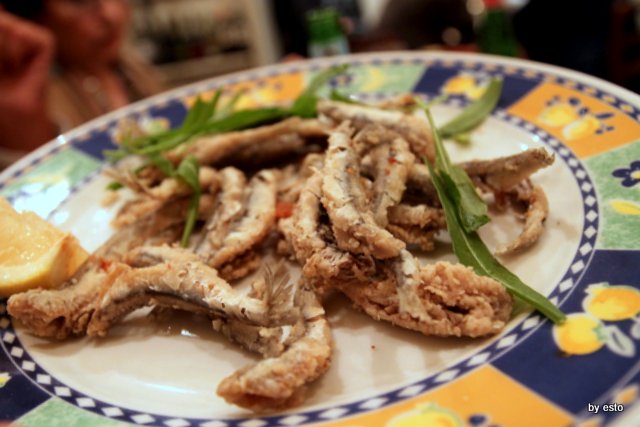 Poi qualche sfizioso antipasto con delle alici fritte profumatissime e gustose.