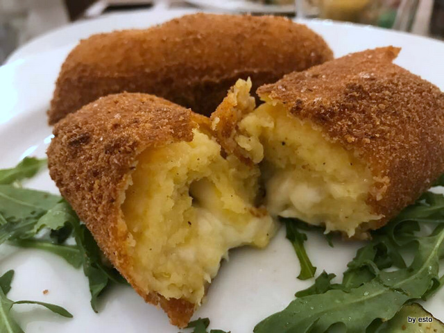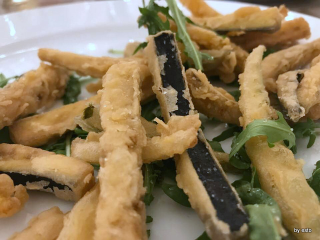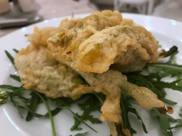 Abbiamo assaggiato dei fritti, crocché di patate vere verdura pastellata fiori di zucca con ricotta, ben fatti che vengono dalla cucina (qui a pranzo e a cena si può anche prendere qualche piatto di tradizione soprattutto di pesce).