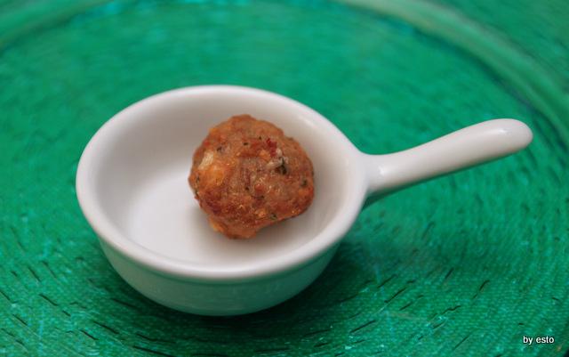 Una polpettina odorosa di rosmarino e cacio. Gustoso boccone d’avvio sostenuto da un sorso di birra artigianale sannita Saint John’ Bier.