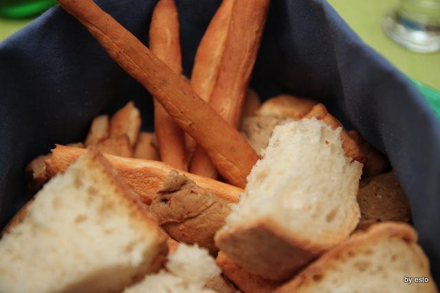 Il pane fa compagnia: è quello bianco fragrante. Ci sono grissini e gallette al sesamo.