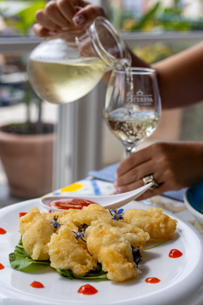 Fu così che, intorno al 1880, Teresa prese coraggio e decise di portare fuori una grande tavolata, trasformando quella piccola casa in un luogo di incontro e di condivisione. Con determinazione e spirito d’iniziativa, cucinava pietanze semplici arricchite da sapori capaci di conquistare tutti. La leggenda narra che i suoi polipi colpirono persino il re, che raggiungeva il Borgo via mare per assaggiare i suoi piatti e che, su consiglio della stessa Teresa, fece costruire una scala per poter arrivare facilmente alla sua cucina, ancora oggi esistente.