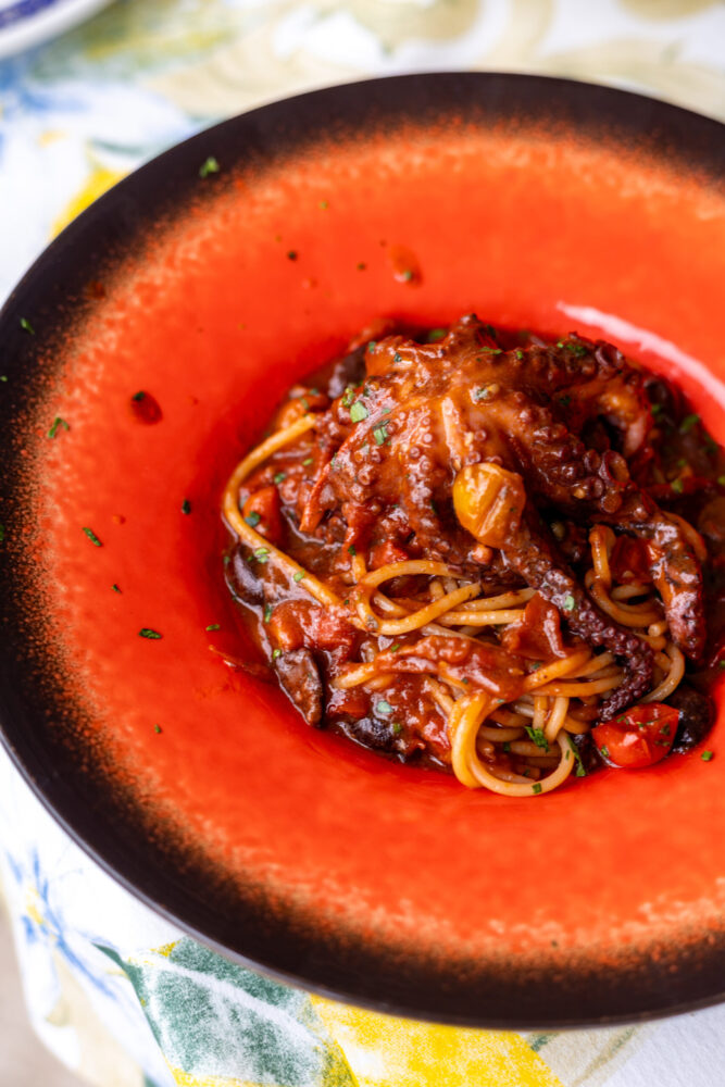 Il mare in tavola, ma con creatività, rimandi al passato e nuove combinazioni. Da Zì Teresa le proposte del menu estivo, accanto ai grandi classici come spaghetti alle vongole, polipetti al sugo e pescato del giorno, insalata di mare – per citarne qualcuno – strizzano l’occhio alla modernità, fatta anzitutto di nuovi e accattivanti piatti in ceramica decorata e vetro, dalle forme diverse e idonei ad esaltare le preparazioni di volta in volta proposte.