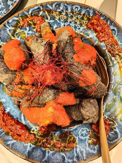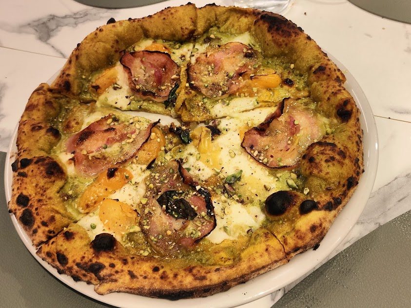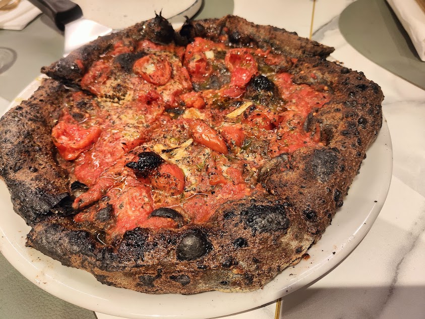 Curcuma quindi, ma anche carbone vegetale e impasti special che cambiano ogni mese: ora è la volta dell’impasto 9 cereali. Salvatore Santucci spazia dalla proposta al carbone vegetale leggero, fragrante e altamente alveolato, con una consistenza morbida e un morso pulito, a quello alla curcuma spezia antica e preziosa, utilizzata non solo per il suo colore dorato e inconfondibile, ma per il contributo aromatico e la sua naturale leggerezza al palato ed infine forse quello più famoso ovvero il verace risultato di equilibrio e curiosità, un connubio tra classicità e innovazione che rende la sua Margherita con San Marzano davvero speciale che riproduce “il sapore di una volta quando da bambini tornavamo a casa con le pizze incartate”, dice Santucci.