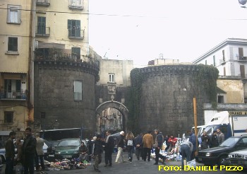 Siamo tornati nei luoghi degli antichi fasti della Napoli aragonese, durante gli anni nei quali , grazie al Re Alfono d’Aragona, fu risistemata la cinta muraria della città con le rispettive porte. Tra queste, oltre la più famosa Porta Capuana, anche la vicina Porta Nolana, innalzata nel XV secolo, s’ispira alla prima, perché possiede anch’essa due imponenti torri (Fede e Speranza, mentre Onore e Virtù sono le Torri di Porta Capuana). La denominazione è dovuta all’orientamento, nella direzione della città di Nola e della fascia suburbana della città, poiché per entrare e uscire da Napoli era obbligatorio transitarvi.