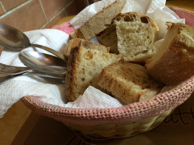 Mangia e Bevi, il cestino del pane (ottimo) con dentro tovaglioli e posate