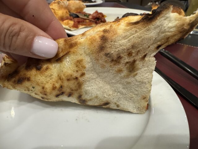 I fratelli Panico propongono impasti ben fatti. Sulla contemporanea emerge chiaramente l’alta idratazione, con un panetto che sfiora i 270 grammi, proposto anche a ruota di carro, ben steso e con un diametro che arriva ai canonici 35 cm. Il menù è ricco e variegato: si va dalla pizza classica alla versione nel ruoto, dal padellino alla doppia cottura, fino alla fritta e al calzone. Non mancano gusti creativi e accostamenti originali.