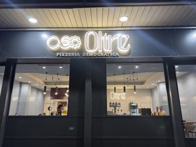 Ha aperto da pochi mesi a Napoli: Oltre “Pizzeria Democratica”, un progetto a tutto tondo dedicato alla pizza, ideato dai giovani fratelli Ivan e Dylan Panico. Il locale si trova in via del Fiumicello 6, una tranquilla traversa di via Marina, facilmente raggiungibile sia in auto che con i mezzi pubblici. In particolare, la sera è spesso possibile trovare parcheggio direttamente davanti al locale: un dettaglio non da poco per chi conosce le difficoltà logistiche della città.