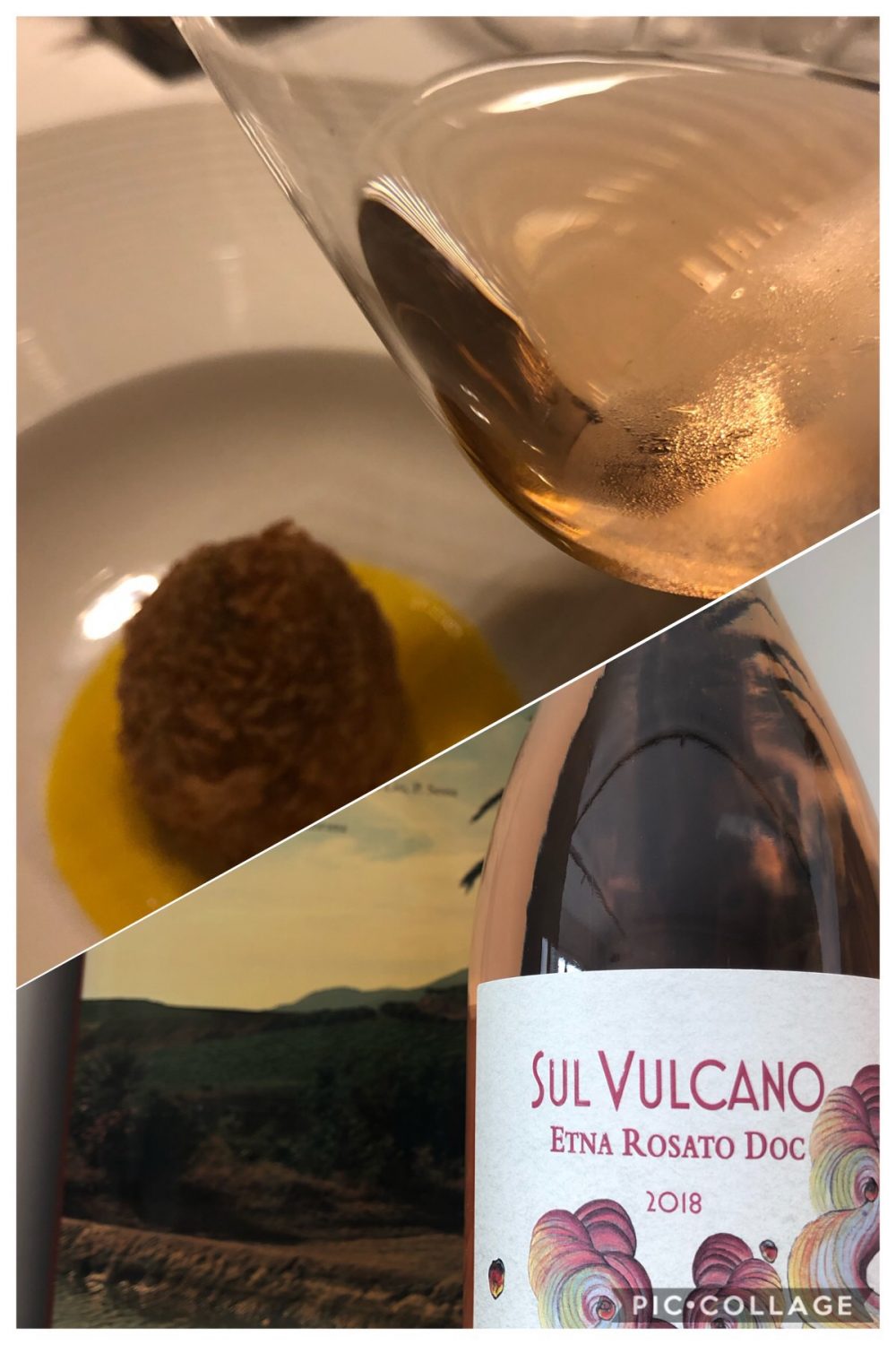 Sul Vulcano Etna Rosato DOC proposto con arancinetto allo stracotto con fonduta di zafferano – chef Giovanni Santoro Shalai Resort