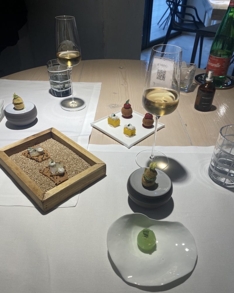 Per una volta, mi sembra giusto fare i complimenti al maitre sommelier ancor prima che allo chef. Si, perché, per 60 euro a cranio – con rabbocco gratuito – Antonio ci ha fatto fare un bellissimo viaggio tra vini esteri di nicchia, giovani e vecchi, che mantengono un prezzo relativamente onesto, ma potrebbero giocarsela con i campioni delle rispettive categorie.
