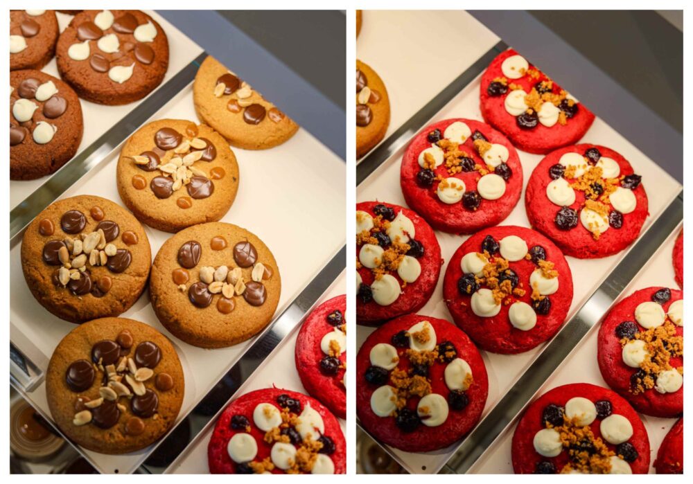 Accanto ai lievitati, ci sono loro: i cookies, ormai un simbolo del banco, proposti in tantissimi gusti, dal lampone al doppio cioccolato, fino al caramello.