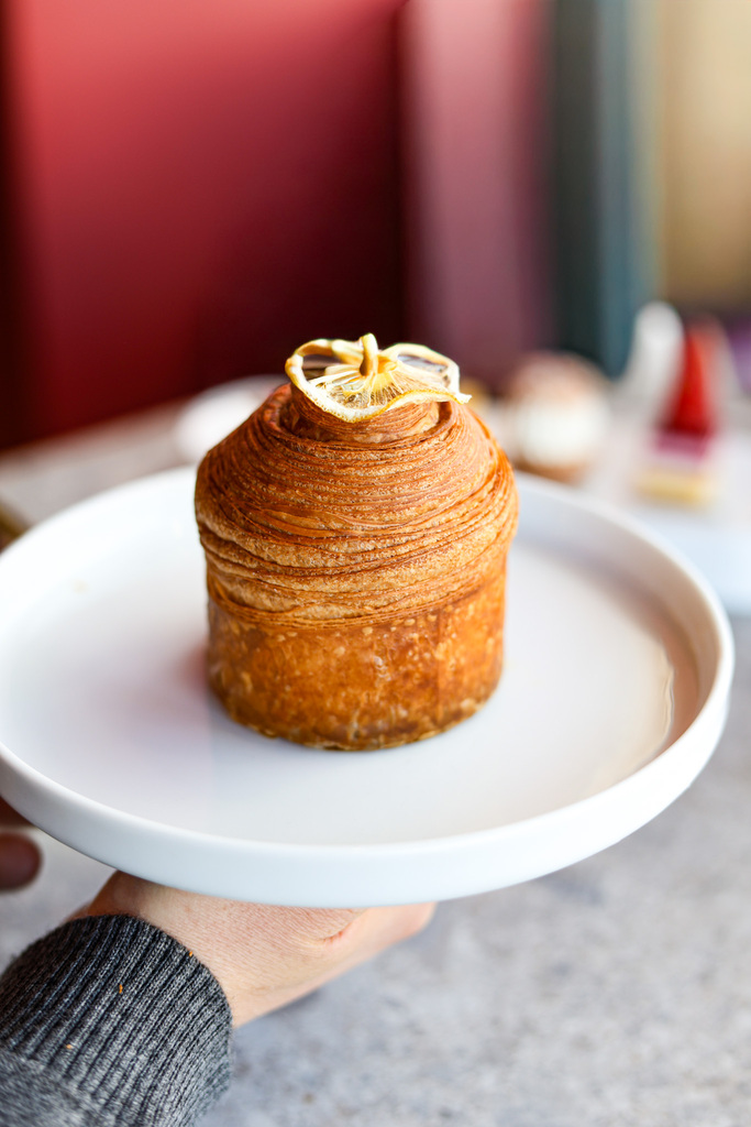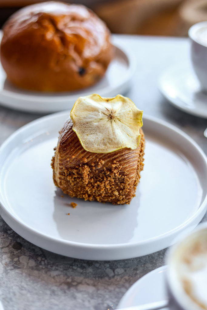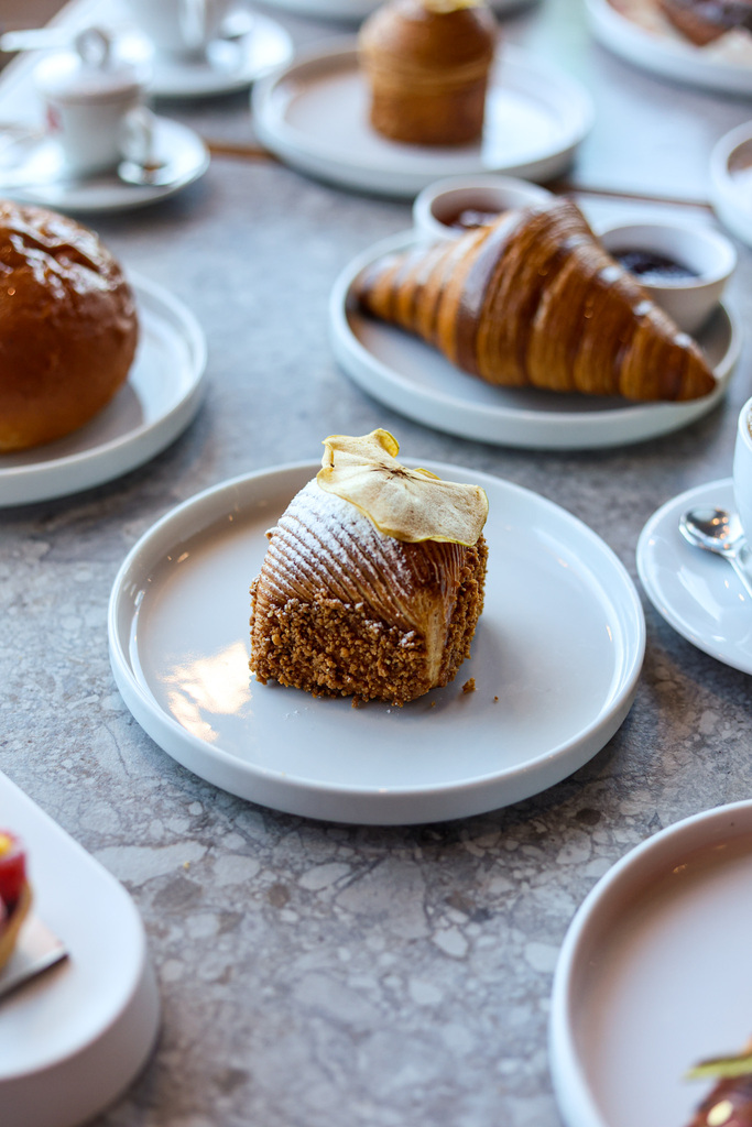 Tra i dolci che mi hanno colpito di più c’è Melina: un impasto da croissant che racchiude un cuore profumato e complesso, con mele, cannella, vaniglia, crema pasticcera e una frangipane alle nocciole che chiude il cerchio con una nota rotonda e avvolgente. E poi ci sono i macaron, disponibili in molte varianti, piccoli e precisi, pensati sia per l’assaggio sul momento sia per essere portati via.La proposta non si ferma alla mattina.