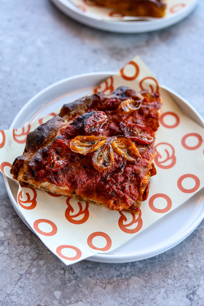 La viennoiserie, diventata uno dei simboli della casa, convive con un’impostazione da bakery che accompagna la giornata fino a sera, anche grazie alla parte salata e alla pizza: una pizza casereccia rivisitata, alleggerita, realizzata con prefermento e pensata per essere digeribile e moderna, perfetta anche in chiave aperitivo.