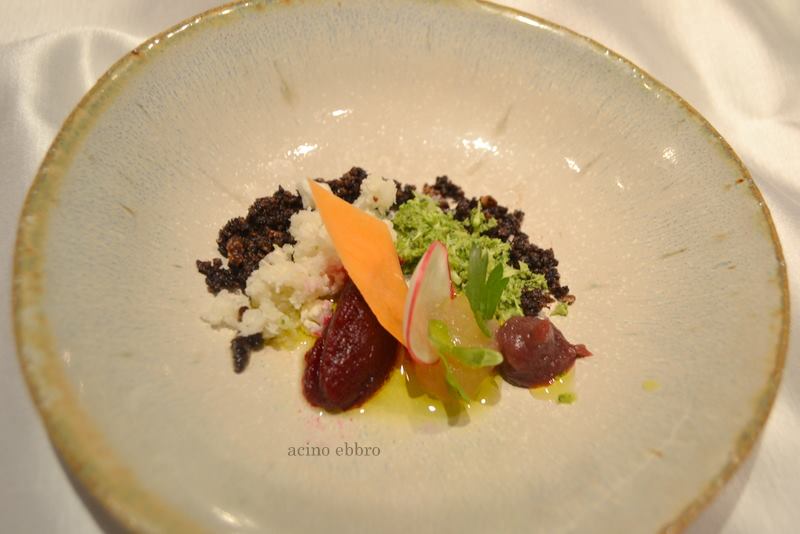Valle Serena, Orto di J: broccolo, cavolo, olive taggiasche, acqua di pomodoro, mostarda di barbabietola e cipolla rossa di Stefano Santo