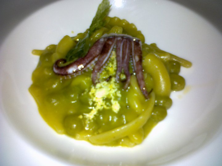 Qui c’è la pasta mischiata dove il gioco di consistenze è davvero godurioso. Il nostro palato partenopeo si ritrova ovviamente a casa, ma invece della pancetta, che noi non amiamo proprio in questa preparazione perché ammazza la freschezza del legume, qui c’è una dote di sapidità iodata e al tempo stesso di dolce consistenza gommosa con i tentatcoli del totano. Uahu