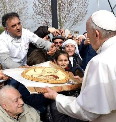 Marco Amoriello consegna la pizza a Papa Francesco