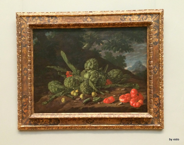 Luis Meléndez Naples 1716 – Madrid 1780, Still Life of artichokes and tomatoes in a landscape.