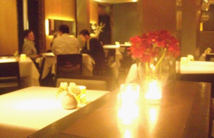 Il Dovetail è all’angolo con la 77th di fronte all’unico blocco senza palazzi, una spianata deserta di asfalto racchiusa da reti metalliche, spazzata dal vento, quasi periferica, da film poliziesco. Ma non ci pensi più se due splendidi occhi a mandorla ti accolgono all’ingresso, un attimo prima di esser catturato dai giochi di luce a tutta parete di un’infinità di bottiglie che ti guardano anch’esse dietro vetri climatizzati. E’ tardi, perché i tavoli occupati stanno terminando di cenare, e non c’è niente di peggio che sentire l’eco delle proprie voci, affamate di un brusìo che le possa sostenere e confondere. Il Sunday Suppa non prevede menu degustazione, ma una scelta libera tra sei appetizers, cinque entrées e tre dessert: la pagina web non è aggiornata, bisognerà andare anche a intuito, ma è giusto così, ché il mercato di Union Square se ne frega del mio inglese.