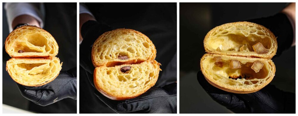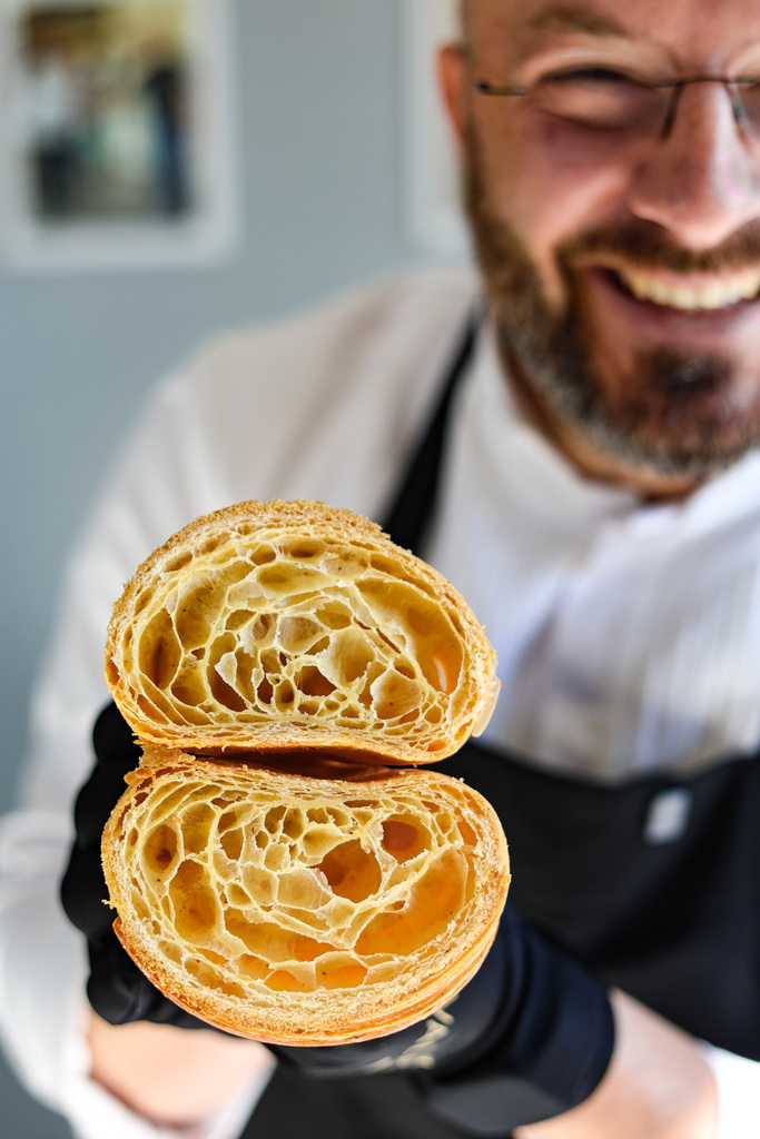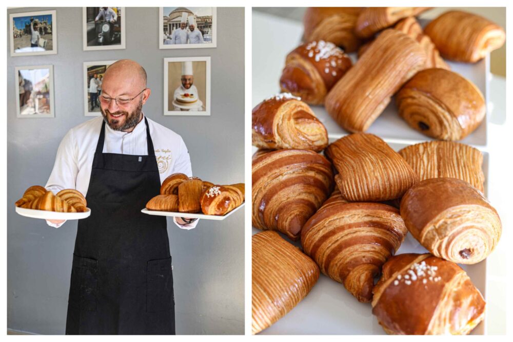 Prodotti da colazione pensati per il takeaway: da portare in ufficio, in macchina, a casa. Cornetti all’italiana, pain au chocolat, pan suisse classico e alle mele, polacca crema e amarena. Tutto studiato con la stessa attenzione riservata alla pasticceria: qualità, estetica, equilibrio. La produzione è controllata, quasi sartoriale. Non interessa fare “mille colazioni”, ma sapere che domani Vincenzo porterà in ufficio il suo pain suisse, fatto come si deve.