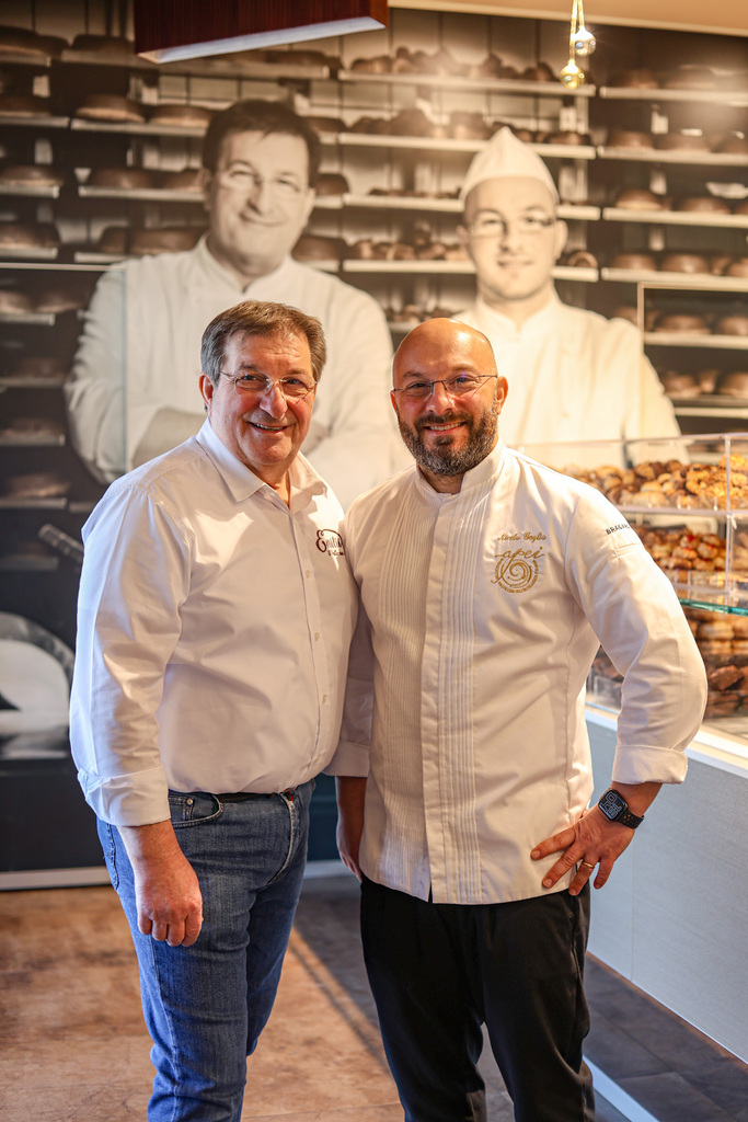Emilio lavora ancora oggi all’interno della pasticceria, rappresentandone la memoria storica e l’anima fondante, mentre Nicola, entrato negli anni nei laboratori, ne guida l’evoluzione produttiva e creativa.