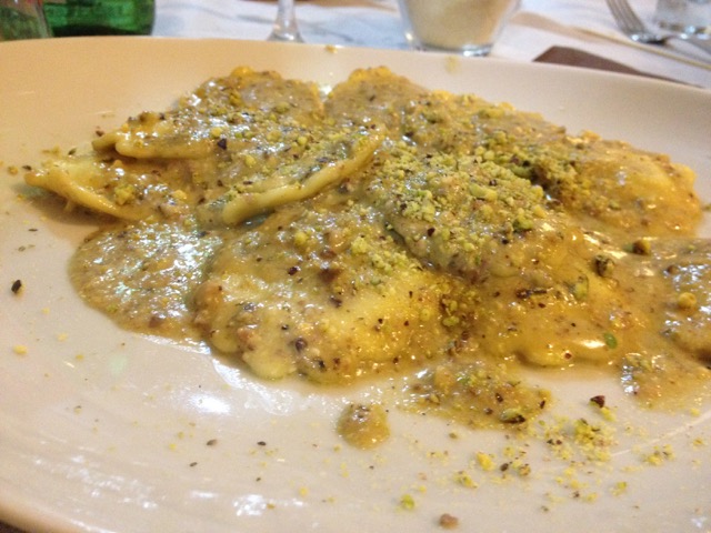Personalmente sono golosa di pistacchi e non ho saputo proprio resistere alla tentazione di ordinare un piatto di ravioli al pistacchio di Bronte!