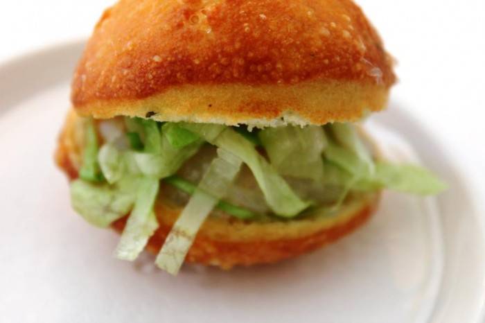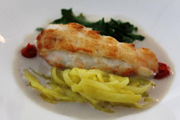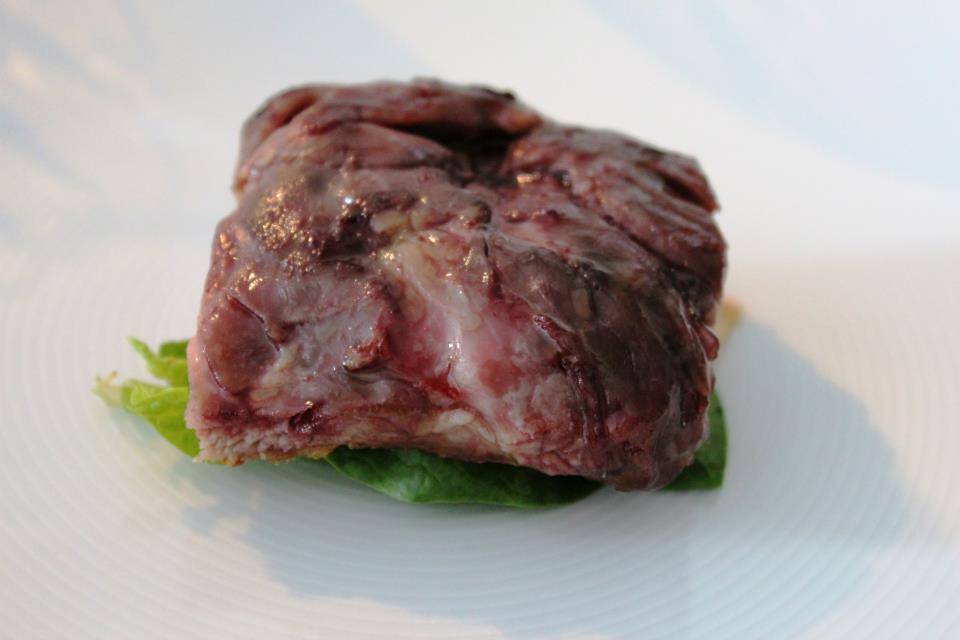 La carne è dolce, setosa, ingentilita e sfibrata dall’emulsione con l’olio, la maionese con una spiccata acidità resetta il palato.