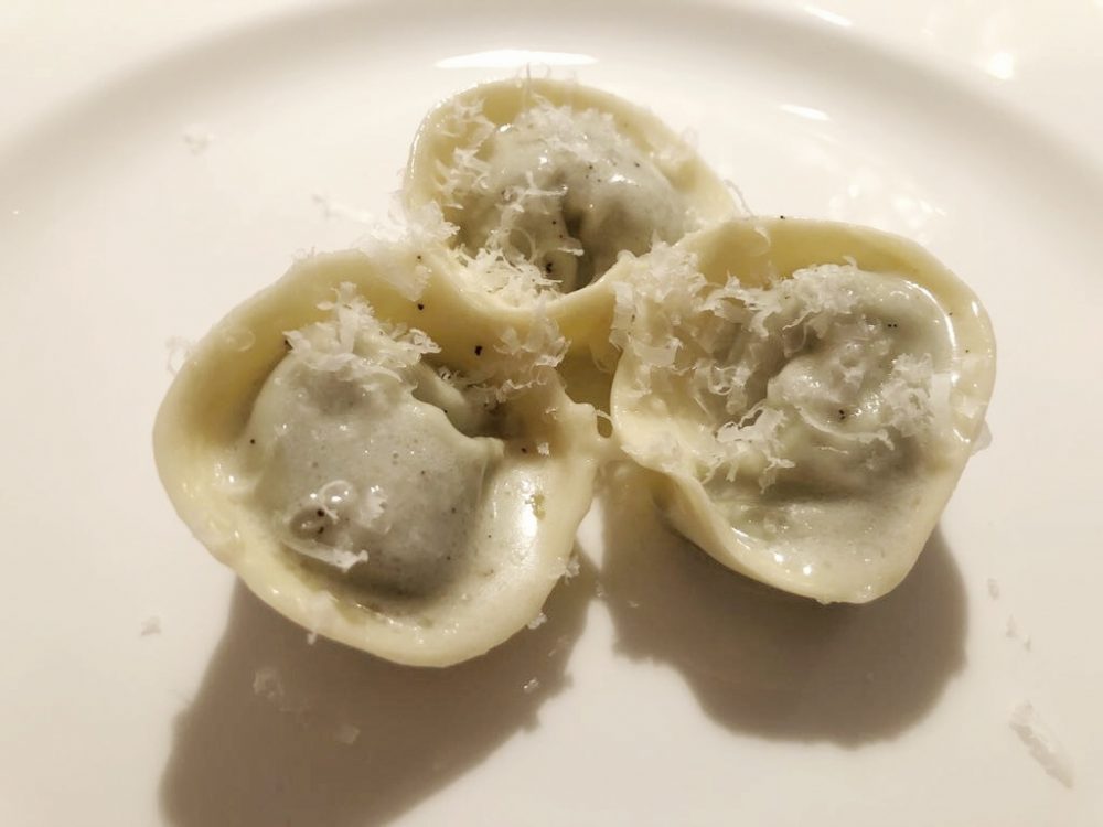 C’è il territorio nel cardoncello arrosto e c’è la famiglia nel raviolo con ricotta e spinaci e nel racconto di una manteca selezionata da una piccola azienda dei dintorni. Una pasta sottile che diventa protagonista perché si sente, c’è!